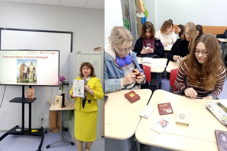 Библиотекарь познакомила обучающихся с историей возникновения праздника, отметила важность и значение для культуры России. Рассказала обучающимся о первых учителях славянских народов – святых Кирилле и Мефодии, о первых славянских азбуках – «кириллице» и «глаголице».