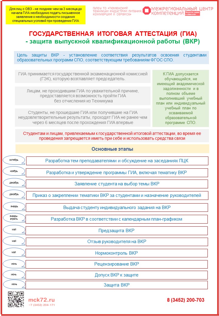 За шесть месяцев до начала итоговой аттестации до студента доводятся сведения о программе государственной итоговой аттестации, требования к выпускной квалификационной работе и критерии оценки знаний.